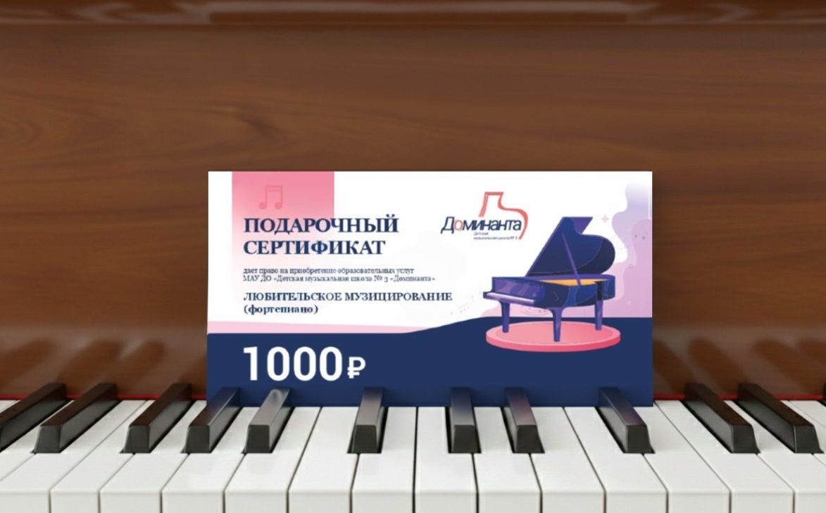 Настоящий подарок должен быть не просто приятным, но и значимым. Подарочный сертификат на занятия в Детской музыкальной школе № 3 «Доминанта» — это именно то, что нужно для тех, кто хочет сделать действительно особенный и запоминающийся подарок.